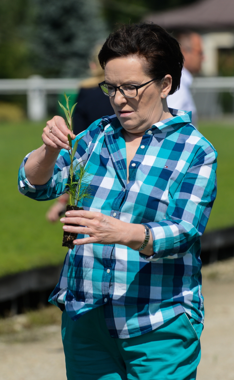 Na zdj.: Premier Ewa Kopacz, podczas spotkania z pracownikami nadleśnictwa Jabłonna, 19 bm. w Leśnictwie Szkółkarskim w miejscowości Skierdy (Mazowieckie).