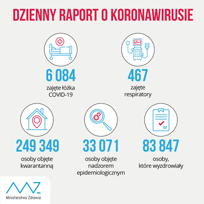 Nowe przypadki dotyczą województw: mazowieckiego (1188), małopolskiego (1137), śląskiego (520), wielkopolskiego (508), łódzkiego (405), kujawsko-pomorskiego (356), pomorskiego (344), podkarpackiego (319), dolnośląskiego (315), lubelskiego (256), świętokrzyskiego (255), opolskiego (233), warmińsko-mazurskiego (196), zachodniopomorskiego (175), podlaskiego (174) i lubuskiego (145).