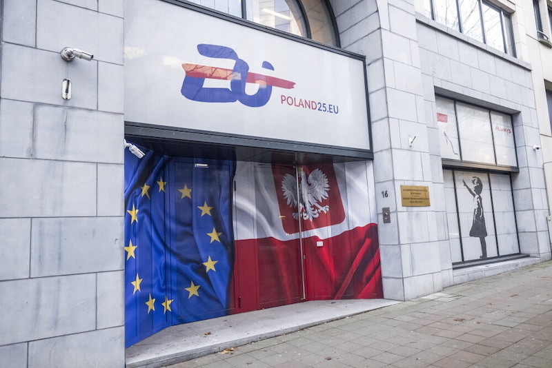Graficzny symbol drugiej polskiej prezydencji przez najbliższe pół roku będzie wisieć na budynku, w którym mieści się Rada UE - przy rondzie Schumana, gdzie zlokalizowane są inne kluczowe unijne instytucje, w tym Komisja i Rada Europejska. W czerwcu siedziba zostanie udekorowana emblematem Danii, która będzie sprawować prezydencję do końca 2025 r. Kraje przewodniczące Radzie UE współpracują w tzw. trojkach. Razem z Polską trio tworzą Dania i Cypr; ten drugi kraj przejmie prezydencję za rok.