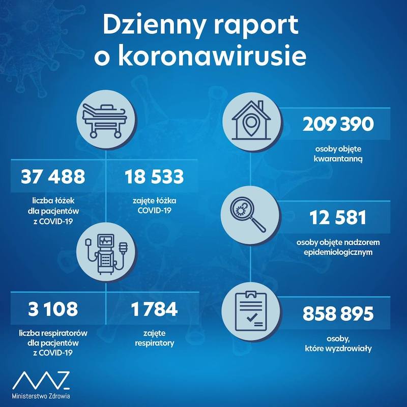 Ministerstwo poinformowało, że na kwarantannie przebywa 209 390 osób, a nadzorem sanitarno-epidemiologicznym objęto 12 581 osób.