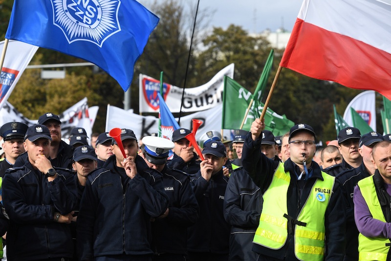 Protest policjantów trwa od 10 lipca. Od 16 lipca dołączyli do nich funkcjonariusze Straży Granicznej, Służby Więziennej, Państwowej Straży Pożarnej i Służby Celno-Skarbowej. Decyzję o ogólnopolskiej akcji protestacyjnej podjęła Rada Federacji Związków Zawodowych Służb Mundurowych. Początkowo związkowcy domagali się podwyżek o 650 zł, powrotu do poprzedniego systemu emerytalnego i odmrożenia waloryzacji pensji. 12 marca br. wysłali swoje postulaty do ministrów spraw wewnętrznych i administracji oraz finansów i sprawiedliwości. W marcu FZZSM informowała, że jeśli postulaty nie zostaną spełnione, odbędą się protesty.
