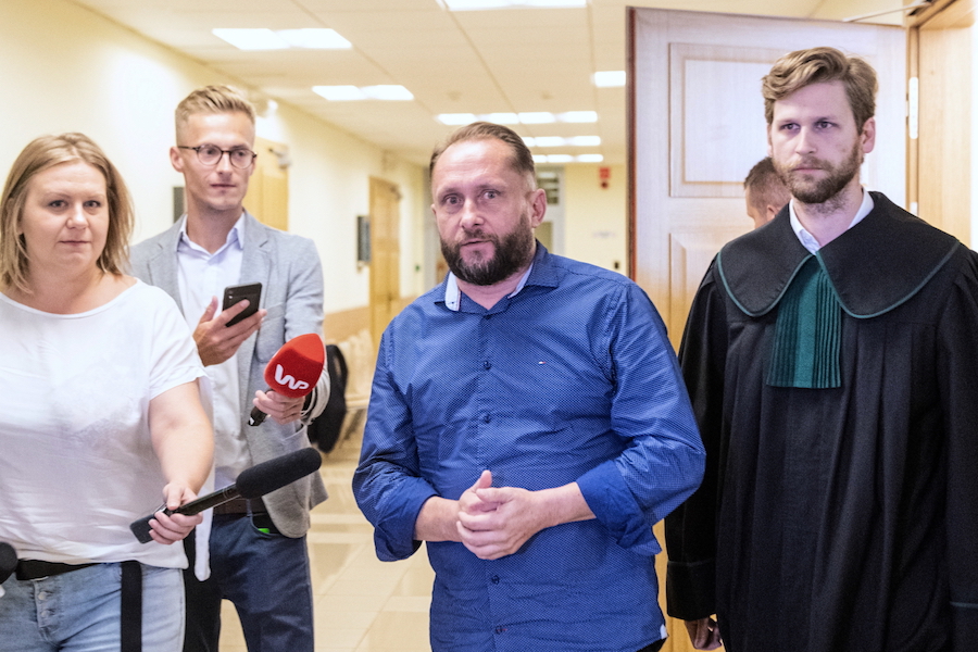 Na zdjęciu: Dziennikarz Kamil Durczok na korytarzu Sądu Rejonowego w Piotrkowie Trybunalskim Fot. PAP/Grzegorz Michałowski