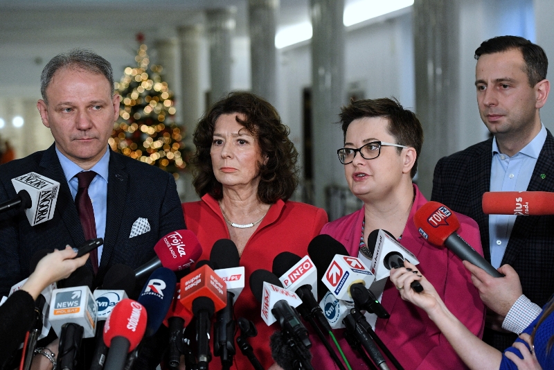 Na zdjęciu od prawej: prezes PSL Władysław Kosiniak-Kamysz, przewodnicząca Nowoczesnej Katarzyna Lubnauer, przewodnicząca partii Unia Europejskich Demokratów Elżbieta Bińczycka i Jacek Protasiewicz z Unii Europejskich Demokratów podczas konferencji prasowej w Sejmie