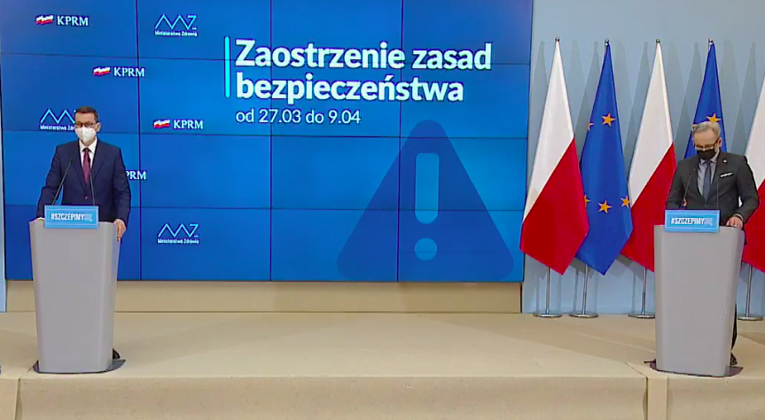 Mateusz Morawiecki dodał, że sytuacja epidemiczna “nie pozostawia za wiele marginesu swobody”, dlatego “dzisiaj trzeba znowu zaostrzyć obostrzenia, aby przerwać łańcuch zakażeń”. Jednocześnie zaapelował do Polaków, aby święta wielkanocne spędzili w wąskim gronie osób.
