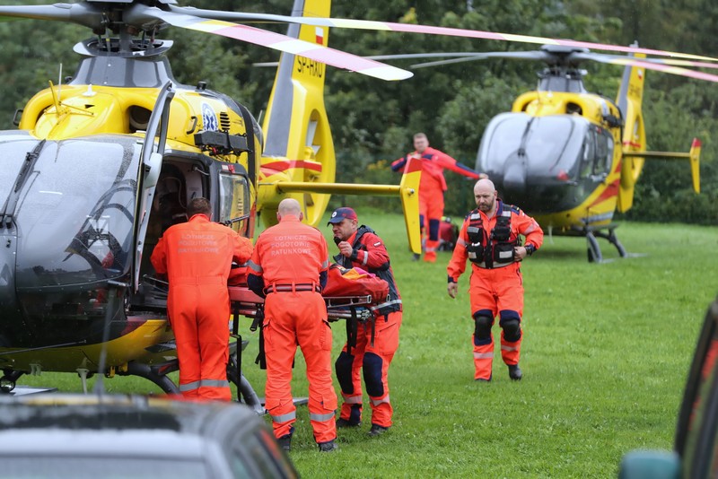 Rzecznik Krakowskiego Pogotowia Ratunkowego Joanna Sieradzka, które koordynuje transport poszkodowanych podała, że w akcji bierze udział dziewięć zespołów ratownictwa medycznego (karetek) z: Zakopanego (2), Nowego Targu (2), Bukowiny Tatrzańskiej (2), Wróblówki, Sromowców i Krościenka. Zaangażowane są także trzy zespoły transportowe z Krakowa, cztery śmigłowce LPR, śmigłowiec TOPR.