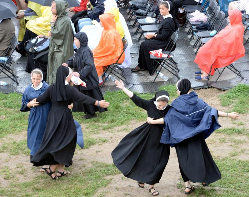 Na zdjęciu: Pielgrzymi z radością oczekiwali na papieża, wyrażając to nie tylko śpiewam, ale i tańcem.