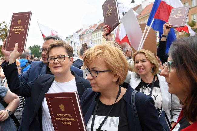 Na zdjęciu: posłanka Nowoczesnej Katarzyna Lubnauer (z lewej) podczas Obywatelskiego Zgromadzenia Narodowego zorganizowanego przez ruchy opozycyjne.