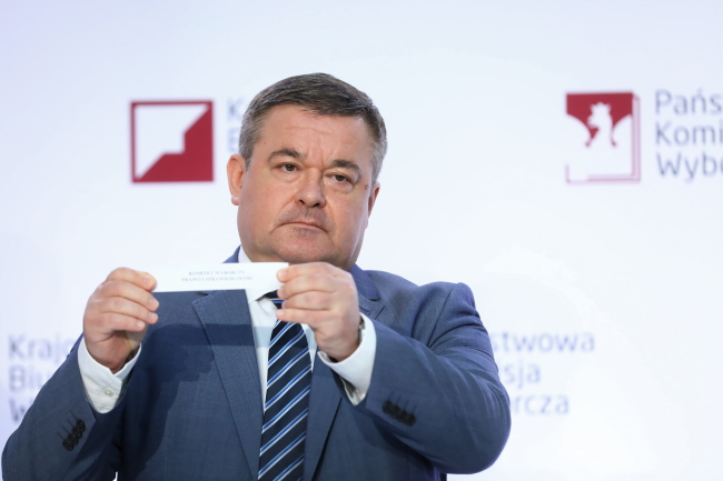 W losowaniu numer 1 przypadł KW Polskie Stronnictwo Ludowe, 2 - KW Prawo i Sprawiedliwość, 3 - KW Sojusz Lewicy Demokratycznej, 4 - KW Konfederacja Wolność i Niepodległość, 5 - KKW Koalicja Obywatelska PO .N IPL Zieloni.