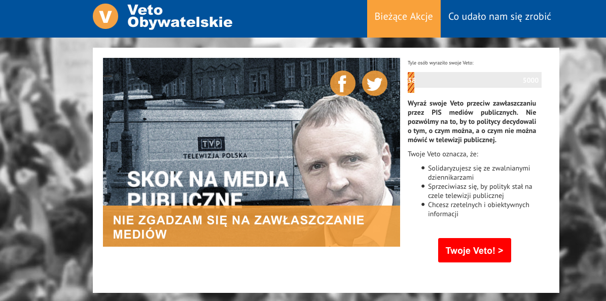 Obecnie można tam wypowiedzieć się na temat zmian dotyczących mediów publicznych, Trybunału Konstytucyjnego i "inwigilacji internetu".