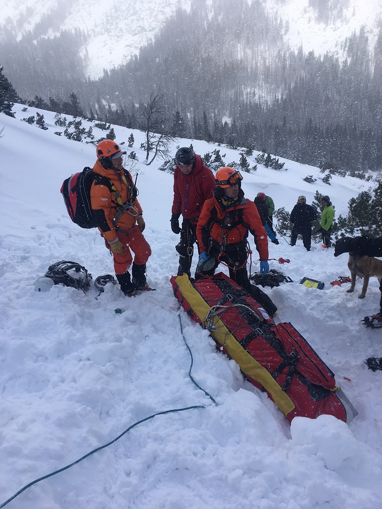 Towarzyszący polskiej parze inny taternik, który nie został zasypany przez zwały śniegu, wezwał na pomoc HZS. Uruchomiony został śmigłowiec ratunkowy z przewodnikiem i psem. W międzyczasie lawinisko przeszukiwali narciarze i inni świadkowie tragedii. Jak podkreśla komunikat HZS, dzięki niezbędnemu specjalistycznemu wyposażeniu lawinowemu jeszcze przed przylotem śmigłowca udało im się wydobyć spod śniegu dwie osoby i rozpocząć akcję resuscytacyjną.