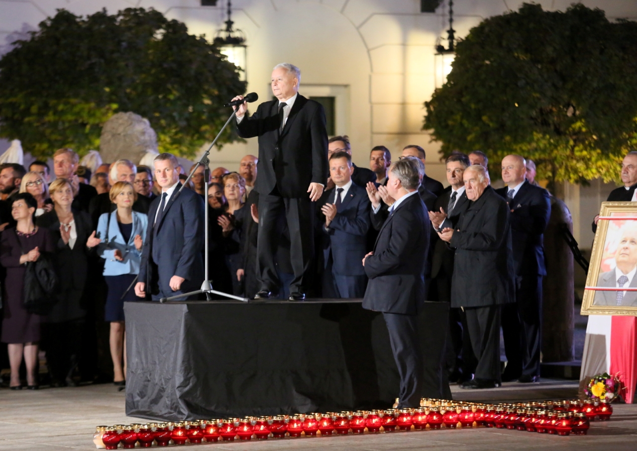 Na zdjęciu: Wystąpienie prezesa Prawa i Sprawiedliwości Jarosława Kaczyńskiego przed Pałacem Prezydenckim
