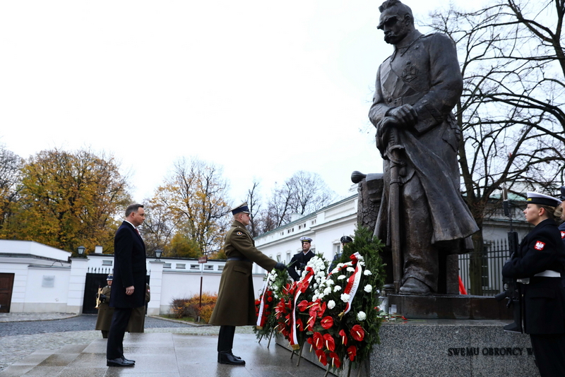 W ramach obchodów 101. rocznicy odzyskania przez Polskę niepodległości prezydent Duda w poniedziałek rano złożył kwiaty przed pomnikiem Wincentego Witosa, a następnie Ignacego Jana Paderewskiego, Romana Dmowskiego, Ignacego Daszyńskiego, Wojciecha Korfantego oraz Józefa Piłsudskiego.