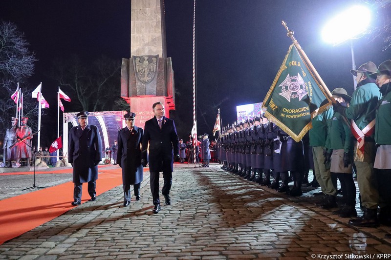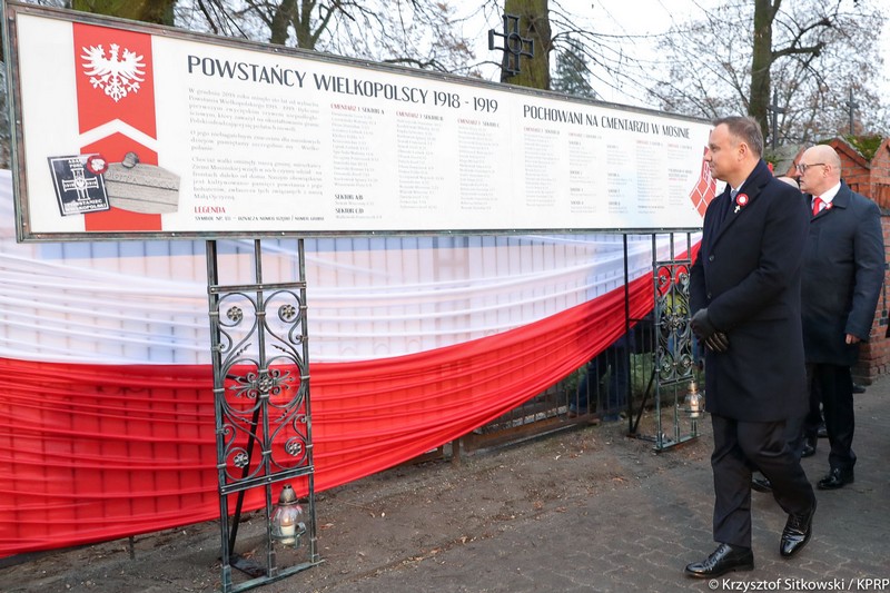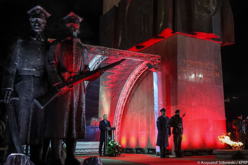 Po południu Andrzej Duda wziął udział w głównych uroczystościach rocznicowych przy pomniku Powstańców Wielkopolskich w Poznaniu.