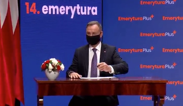 #NaŻywo | Uroczystość podpisania ustawy o dodatkowym rocznym świadczeniu pieniężnym dla emerytów i rencistów, tzw. 14. emeryturze https://t.co/5v3BH82khQ
