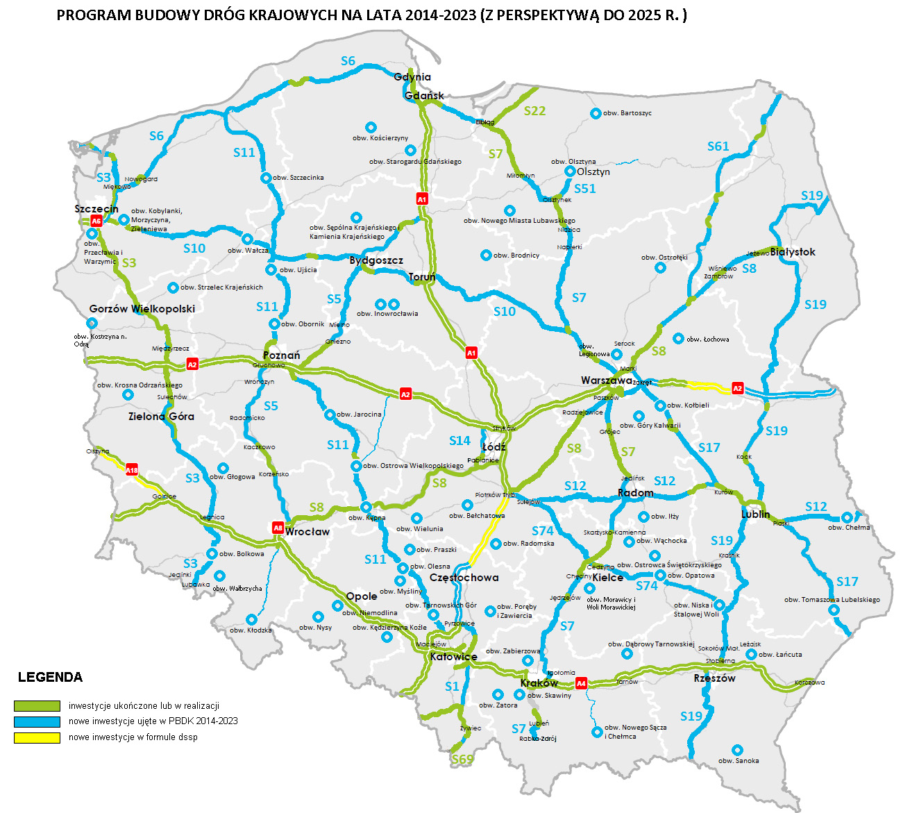 Powstanie 3,9 tys. km autostrad i dróg szybkiego ruchu oraz 57 obwodnic. Program Budowy Dróg Krajowych na lata 2014-23 jest szacowany na 107 mld zł, czyli o 14 mld zł więcej niż pierwotnie zakładano. Pieniądze na inwestycje będą pochodzić z Krajowego Funduszu Drogowego, zasilanego, m.in. z refundacji funduszy UE. Na utrzymanie dróg ma trafić 46,8 mld zł. (pap)