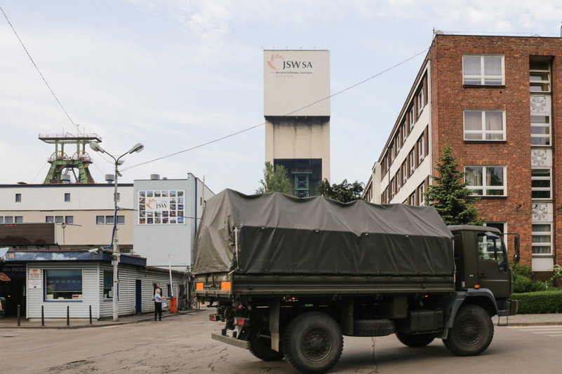 Na zdjęciu: Żołnierze przyłączają się do akcji ratowniczej w kopalni Zofiówka