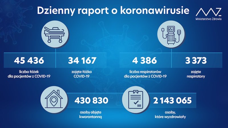 Kwarantanną objęto 430 830 osób. Dotąd po zakażeniu koronawirusem wyzdrowiały 2 143 065 osób.