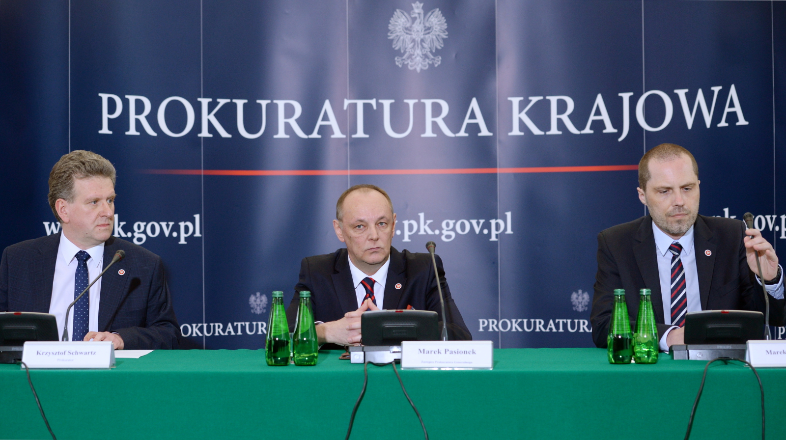 Na zdjęciu: Zastępca prokuratora generalnego Marek Pasionek (w środku) oraz prokuratorzy z Zespołu Śledczego nr 1 Marek Kuczyński (z prawej) i Krzysztof Schwartz