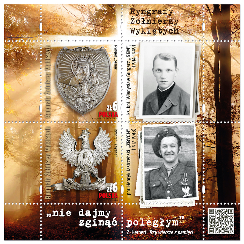 „Nie dajmy zginąć poległym” – pisał Zbigniew Herbert w „Trzech wierszach z pamięci”. Ten cytat stał się mottem wszystkich edycji serii filatelistycznej Poczty Polskiej wydawanej z okazji Narodowego Dnia Pamięci „Żołnierzy Wyklętych”. W tym roku na dwóch znaczkach umieszczono ryngrafy, a na przywieszkach wizerunki ks. kpt. Władysława Gurgacza ps. „Sem” oraz por. Henryka Jastrzębskiego ps. „Zbych”, ”Bohun”.