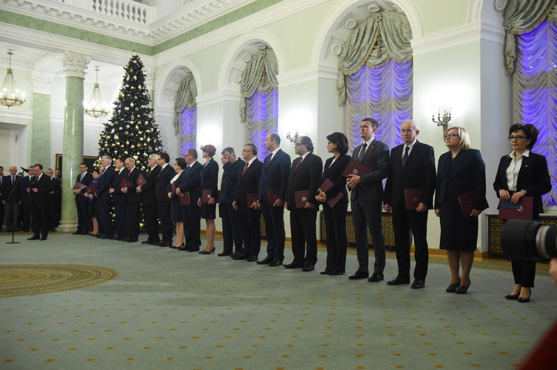 Prezydent Andrzej Duda powołał w poniedziałek 11 grudnia rząd Mateusza Morawieckiego. Nowy premier, który urząd objął po Beacie Szydło, został jednocześnie powołany na szefa resortu finansów i rozwoju, b. premier została wicepremierem, skład reszty Rady Ministrów nie uległ zmianie.