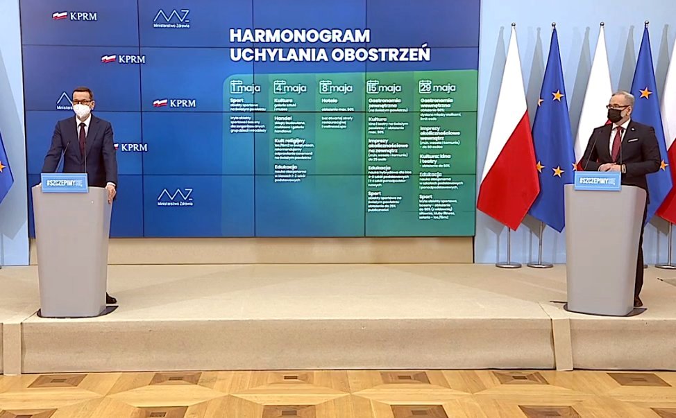 Wycofywanie się z ograniczeń odbywać się będzie równomiernie w całym kraju – rząd odchodzi od regionalizacji obostrzeń. Proces ten rozpocznie się już pojutrze (1 maja). W sobotę, dla grup zorganizowanych, otwierają się obiekty sportowe (również kryte baseny i sale gimnastyczne) z warunkiem 50 proc. obłożenia. Więcej też osób będzie mogło korzystać jednocześnie z boisk na świeżym powietrzu - maksymalnie 50 sportowców.