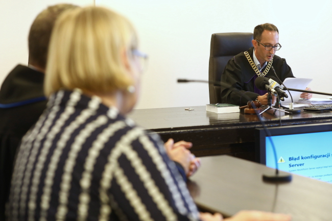 Na zdjęciu: europosłanka Róża Thun oraz sędzia Karol Smaga w Sądzie Okręgowym w Warszawie.