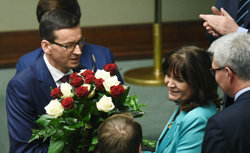 Po głosowaniu posłowie wręczyli biało-czerwone róże premierowi Morawieckiemu, który następnie podarował je b. premier Beacie Szydło. Morawieckiemu pogratulowałm.in. prezes PiS Jarosław Kaczyński.