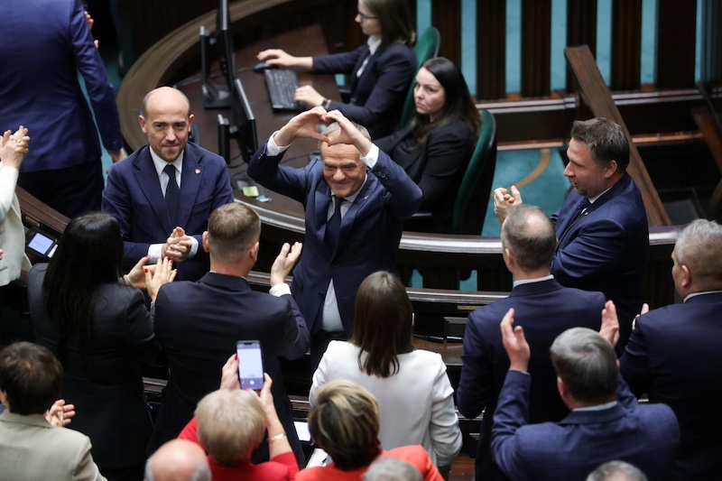 Wcześniej w poniedziałek posłowie w głosowaniu nie udzielili wotum zaufania rządowi premiera Mateusza Morawieckiego. Inicjatywę w sprawie wyboru premiera i rządu przejął w tej sytuacji Sejm. Jedynym kandydatem, zgłoszonym przez przedstawicieli większości, którą mają KO, Trzecia Droga i Lewica, na to stanowisko był Donald Tusk.