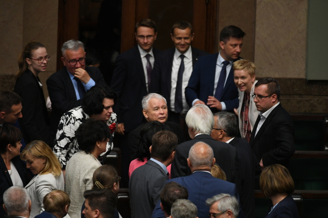 Po jego wystąpieniu posłanka Nowoczesnej Kamila Gasiuk-Pihowicz zgłosiła wniosek o przerwę. "To, co się zdarzyło w tej sali łamie wszelkie możliwe zasady. W trzy minuty chcecie skasować demokrację. Wychodzi prezes Kaczyński w nieznanym w polskim Sejmie nieregulaminowym trybie, schodząc z mównicy obraża kobietę i mówi do niej +won+, do posła Rzeczpospolitej. Nas wybrał suweren, tak jak i was" - oświadczyła.
