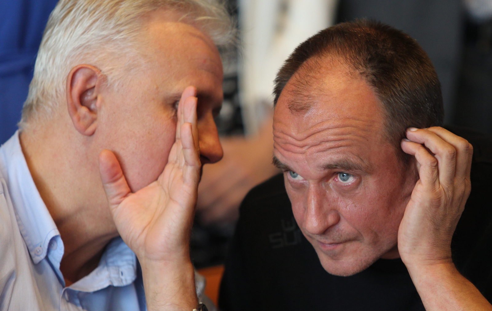 Na zdjęciu: Twórca ruchu Kukiz'15 - Paweł Kukiz (z prawekj) i przewodniczący zarządu Regionu Śląsko-Dąbrowskiego NSZZ "Solidarność" Dominik Kolorz, podczas konferencji prasowej w Katowicach