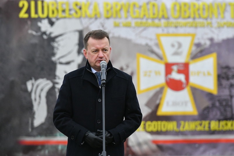 W sobotę Błaszczak wziął udział w zaprzysiężeniu 68 żołnierzy 2. Lubelskiej Brygady Obrony Terytorialnej – uczestników szkolenia podstawowego w ramach projektu "Ferie z WOT". - Tworzymy nowe brygady Wojsk Obrony Terytorialnej - tu na Lubelszczyźnie powstała kolejna brygada WOT; również w województwie podkarpackim - dwie brygady WOT, w woj. mazowieckim Stołeczna Brygada WOT. Rozbudowujemy liczebnie Wojsko Polskie - dziś i jutro w ośmiu brygadach 370 żołnierzy WOT złoży lub już złożyło przysięgę - mówił podczas wystąpienia.