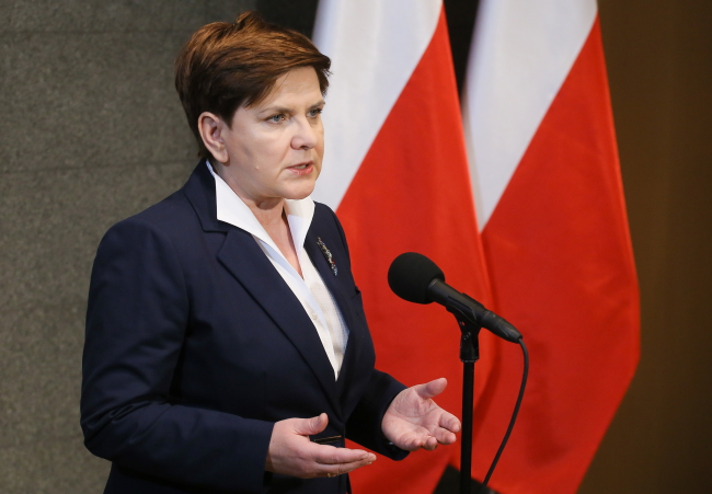 Na zdjęciu: Premier Beata Szydło przed wylotem do Strasburga na wtorkową debatą o Polsce, która odbędzie się w PE. Fot. PAP/Paweł Supernak