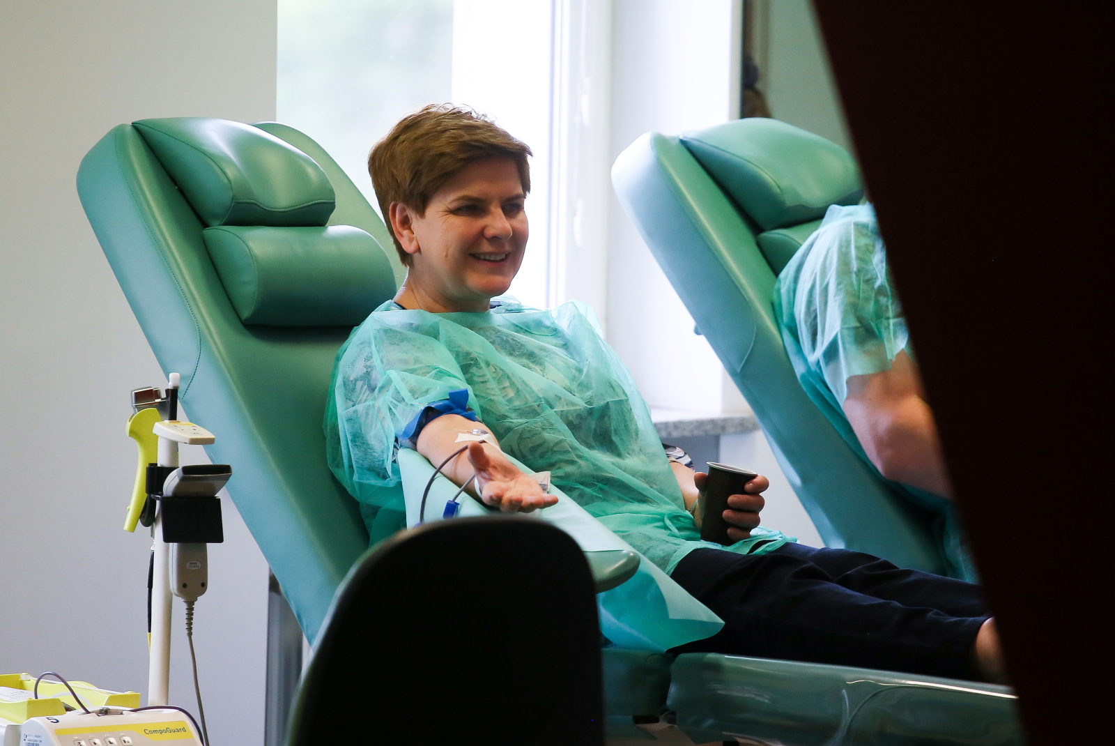 Na zdjęciu: Kandydatka PiS na premiera Beata Szydło oddała krew w Regionalnym Centrum Krwiodawstwa i Krwiolecznictwa w Warszawie.
