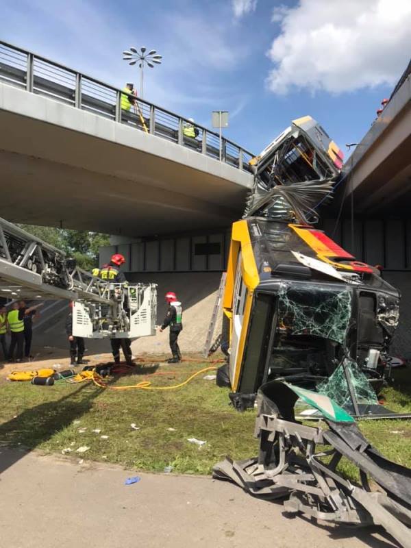 W czwartek (25 czerwca) po południu w Warszawie autobus miejski linii 186 spadł z wiaduktu mostu Grota-Roweckiego na ścieżkę rowerową. Jedna osoba zginęła (wcześniej straż pożarna informowała o 2 ofiarach śmiertelnych), a 17 zostało rannych.