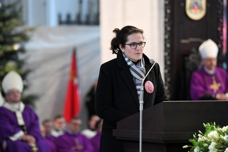 Podczas uroczystości pogrzebowych Pawła Adamowicza przemawiała p.o. prezydenta Gdańska Aleksandra Dulkiewicz.
