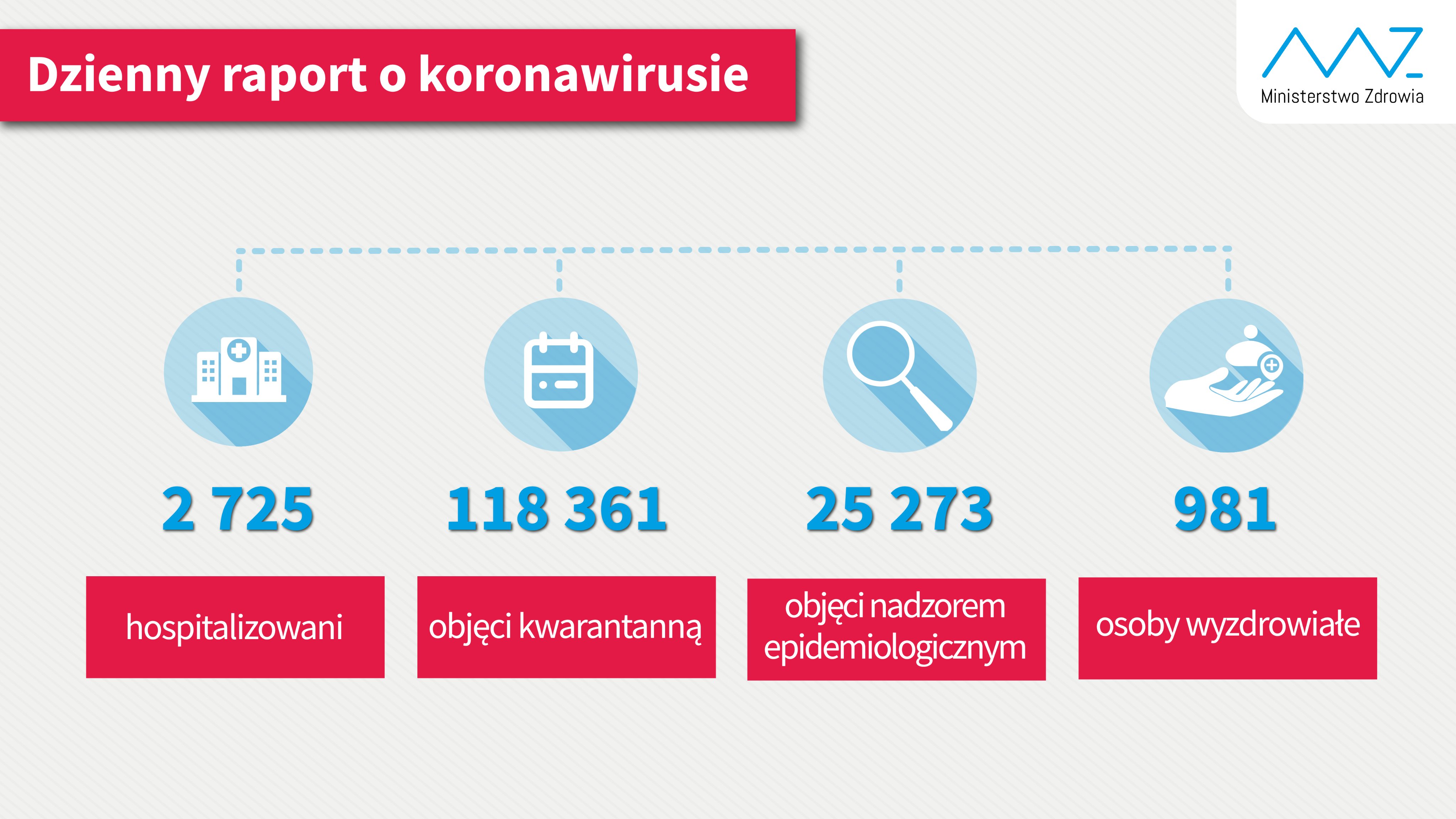 Ministerstwo poinformowało także o śmierci 7 osób zakażonych koronawirusem (wiek-płeć, miejsce zgonu): 83-M Zgierz, 70-M Kalisz, 84-M Bydgoszcz, 74-K Grudziądz, 80-K Drzewica, 84-K Kędzierzyn Koźle, 86-M Bytom. Wszystkie osoby miały choroby współistniejące.