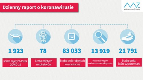 Od początku epidemii w Polsce zakażenie potwierdzono u 34 775 osób. Zmarło 1 477.