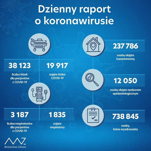 Liczba zakażonych koronawirusem w Polsce od początku epidemii wynosi 1 076 180. Zmarły 20 592 chorych na Covid-19. Wyzdrowiało 738 845 osób.