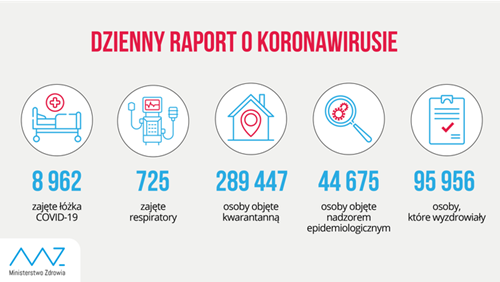 Z powodu COVID-19 zmarło 9 osób, natomiast z powodu współistnienia COVID-19 z innymi schorzeniami zmarło 98 osób.