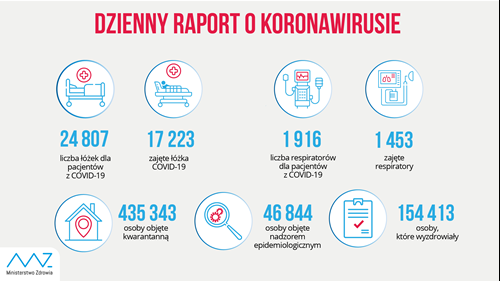 Liczba zakażonych koronawirusem (od początku pandemii) w Polsce: 395 480. Zmarło 5 875 osób.