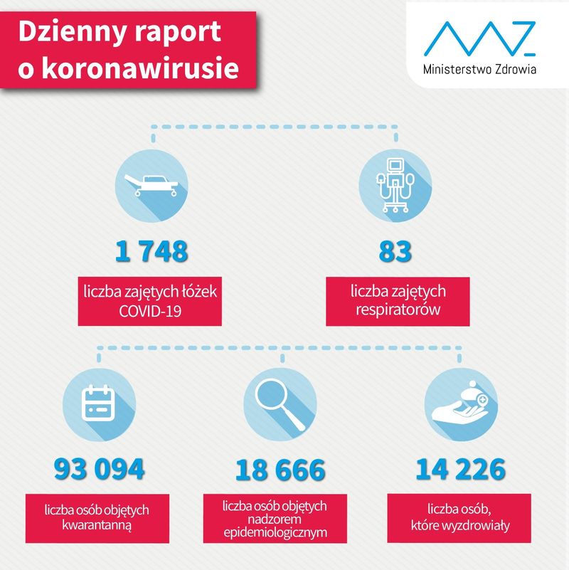 Od początku epidemii stwierdzono w Polsce 29 392 przypadków koronawirusa, z czego 1247 osób zmarło. Wyzdrowiało 14 226 osób, u których wykryto SARS-CoV-2.