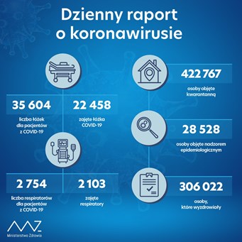 Resort zdrowia informuje też o tym, że z powodu COVID-19 zmarło 16 osób, natomiast z powodu współistnienia COVID-19 z innymi schorzeniami zmarło 127 osób.