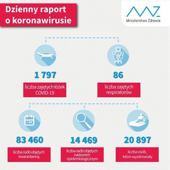 Nowe przypadki zakażeń dotyczą województw: śląskiego (78), wielkopolskiego (31), mazowieckiego (27), łódzkiego (21), podlaskiego (17), małopolskiego (16), świętokrzyskiego (14), podkarpackiego (12), pomorskiego (9), lubelskiego (9), opolskiego (8), dolnośląskiego (3), warmińsko-mazurskiego (2).