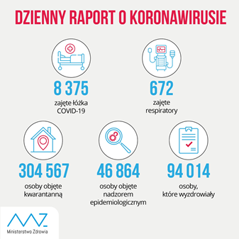 Resort zdrowia informuje też, że z powodu COVID-19 zmarło 5 osób, natomiast z powodu współistnienia COVID-19 z innymi schorzeniami zmarło 36 osób.