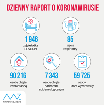 Resort zdrowia informuje też o śmierci 13 osób zakażonych koronawirusem (wiek-płeć, miejsce zgonu): 65-M Grudziądz, 73-M Radomsko, 82-K, 88-M Gliwice, 85-K Ostrowy, 65-K Poznań, 84-K, 72-M Wrocław, 95-M Radom, 81-K Warszawa, 92-K Sędziszów Małopolski, 85-K, 88-K Kędzierzyn-Koźle. Większość osób miała choroby współistniejące.