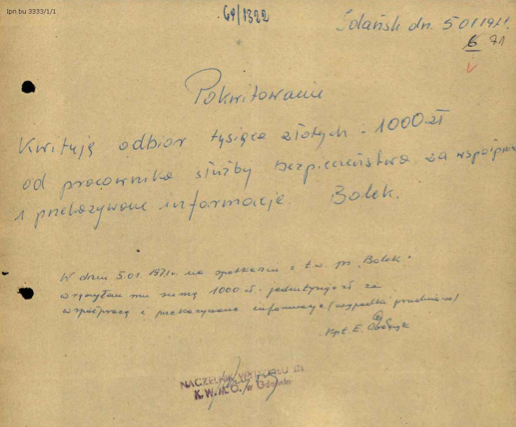 Kamiński dodał, że śledztwo wszczęto w związku z wypowiedziami Lecha Wałęsy, w których „twierdził, że funkcjonariusze sfałszowali pokwitowania odbioru pieniędzy przez TW «Bolek»”.