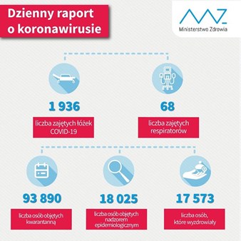 Resort zdrowia informuje też o śmierci 16 osób zakażonych koronawirusem: 93-letnia kobieta z Łańcuta, 85-letnia kobieta z Legnicy, 68-letni mężczyzna, 74-letni mężczyzna i 73-letni mężczyzna z Warszawy, 64-letni mężczyzna z Radomia, 89-letni mężczyzna i 90-letni mężczyzna ze Starachowic, 91-letnia kobieta z Łodzi, 73-letnia kobieta, 90-letnia kobieta, 86-letnia kobieta i 71-letnia kobieta ze Zgierza, 54-letnia kobieta i 88-letni mężczyzna z Raciborza, 72-letnia kobieta z Cieszyna. Wszystkie osoby miały choroby współistniejące.