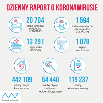 Resort zdrowia informuje też, że z powodu COVID-19 zmarło 15 osób, natomiast z powodu współistnienia COVID-19 z innymi schorzeniami zmarło 117 osób.