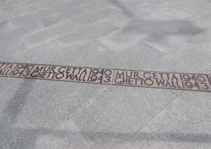 Na zdjęciu: Napis upamiętniający miejsce, w którym stał mur getta warszawskiego.
