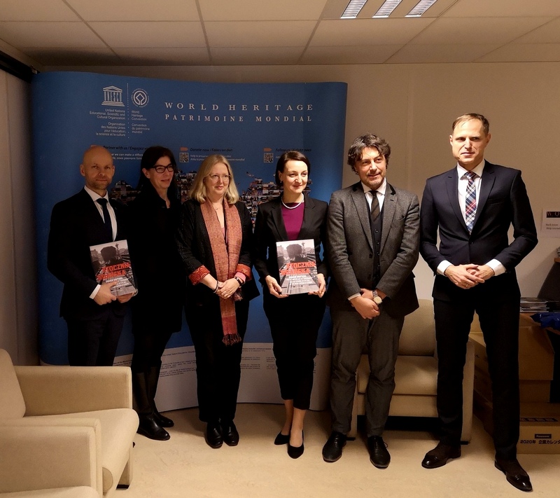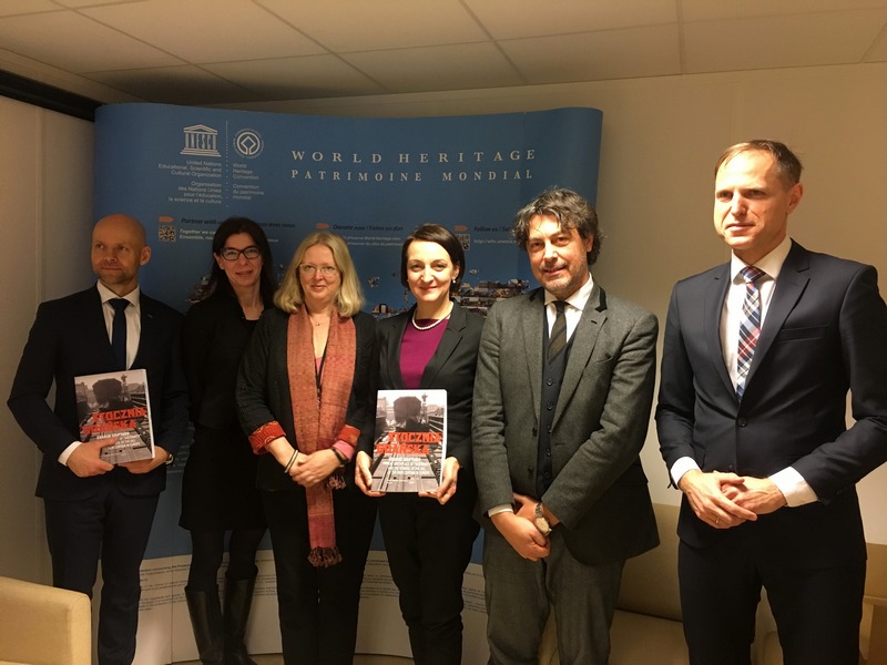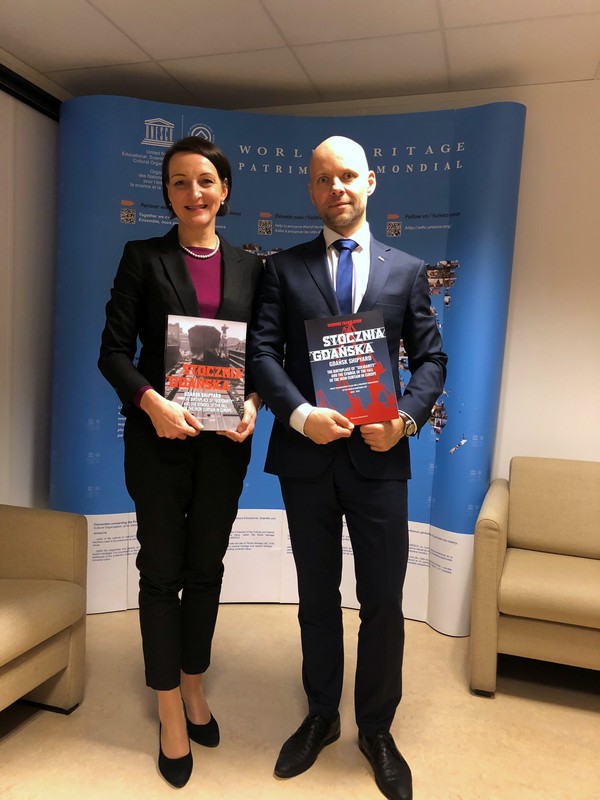 Na zdjęciu: (od lewej) Alan Aleksandrowicz - wiceprezydent Gdańska, Anna Gołębicka - szef projektu „Stocznia na UNESCO”, Mechtild Rössler - dyrektor Centrum światowego Dziedzictwa UNESCO, Magdalena Gawin - podsekretarz stanu w Ministerstwie Kultury i Dziedzictwa Narodowego, Alessandro Balsamo - chief nominations Unit CLT/WHC/NOM, Bartosz Skaldawski - dyrektor Narodowego Instytutu Dziedzictwa.